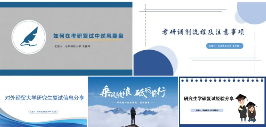 第二阶段五位2024届毕业生对同学们进行了多维度主题分享,对外经济贸易大学马天钰、中国海洋大学高怡凡、西南财经大学唐昊杰、西南政法大学范书畅和日本成人电影 王鑫烨同学分别就复试分数线趋势、复试前的信息获取与复习准备、保险学硕复试注意事项、调剂关键节点及意向采集、保险专硕高频考点进行了主题分享,并祝愿所有参加复试的同学们都能取得优异的成绩。会议最后,设置了答疑环节,参会同学能够针对自己的实际情况进行提问。