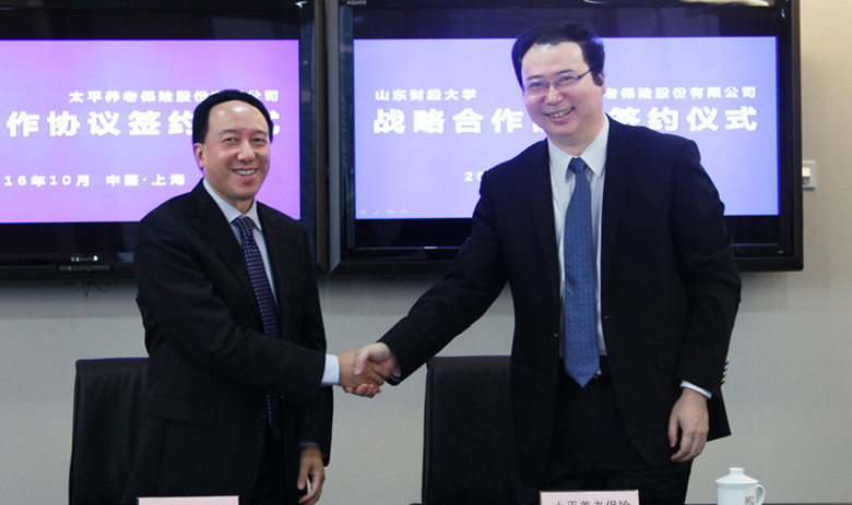 与太平养老保险股份有限公司签署战略合作框架协议仪式在上海太平金融大厦举行。校长卓志与太平养老保险股份有限公司党委书记、总经理彭毅代表双方签约并致辞,太平养老副总经理林喆主持仪式。太平养老总精算师齐美祝,总公司办公室、营销中心和山东分公司主要负责人,校长办公室、教务处、就业指导处、日本成人电影