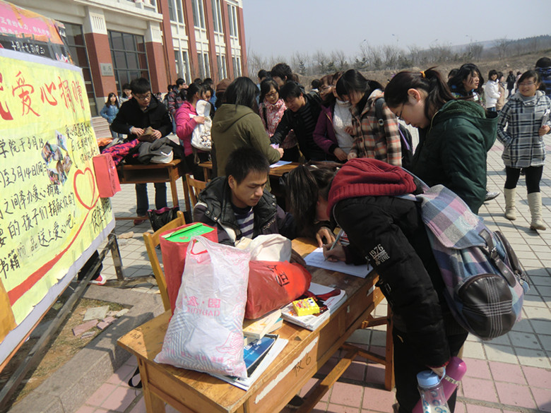 13日中午,募捐活动正式拉开帷幕。活动期间,志愿者们通过活动展板等形式向来往的学生宣传此次爱心捐赠活动。虽然天气寒冷,志愿者们却热情不减,他们充满温情的宣讲吸引了同学们的广泛关注,大家纷纷驻足观看,还有的同学当场献出了自己的爱心。很快,活动场地就摆满了捐赠的各种物品。不少同学留下姓名和电话,准备将自己的图书、衣服等物品捐赠出来。在同学们的积极配合下,活动如火如荼地进行着。整个活动持续了两天,募捐到了图书、学习、生活用品及衣物若干。