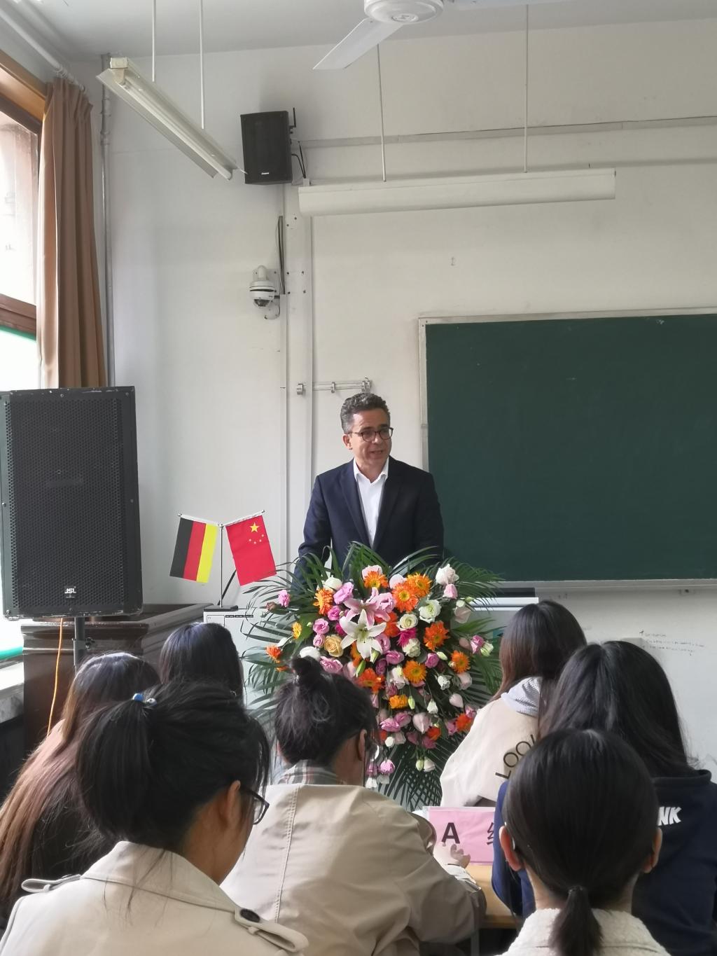 11月7日下午,日本成人电影 与德国安顾集团共同举办的保险数字化主题讲座在舜耕校区教学楼3306举行。德国安顾国际股份公司董事会成员、德国安顾集团大中华区首席执行官、德华安顾人寿保险公司副董事长Jürgen Schmitz(思勇明)先生作为特邀客座教授莅临本次讲座,德国安顾集团北京代表处首席代表朱航、德国安顾集团济南代表处代表王奇、日本成人电影 院长闫庆悦、副院长刘素春、以及50余名研究生共同参加讲座。本次讲座由副院长刘素春教授主持。