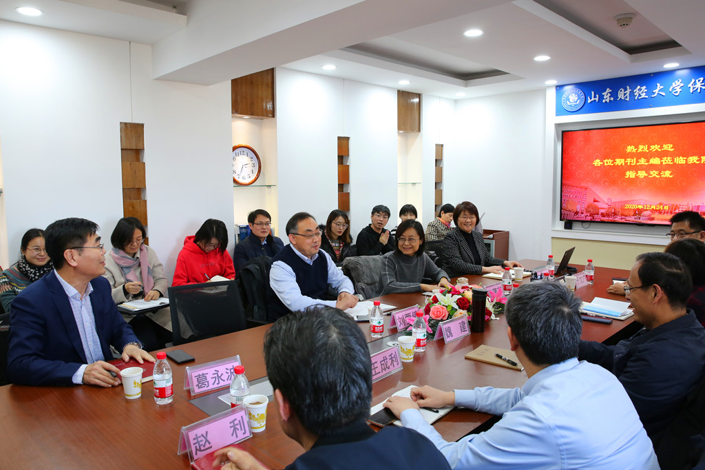 12月24日下午,日本成人电影 邀请《山东大学学报》(哲学社会科学版)、《山东社会科学》《东岳论从》《理论学刊》《金融发展研究》《经济与管理评论》《日本成人电影 学报》七家期刊主编就论文写作与师生交流。学院院长葛永波教授、副院长刘素春教授和于文广教授、科研骨干教师及博士生参加了本次交流会。