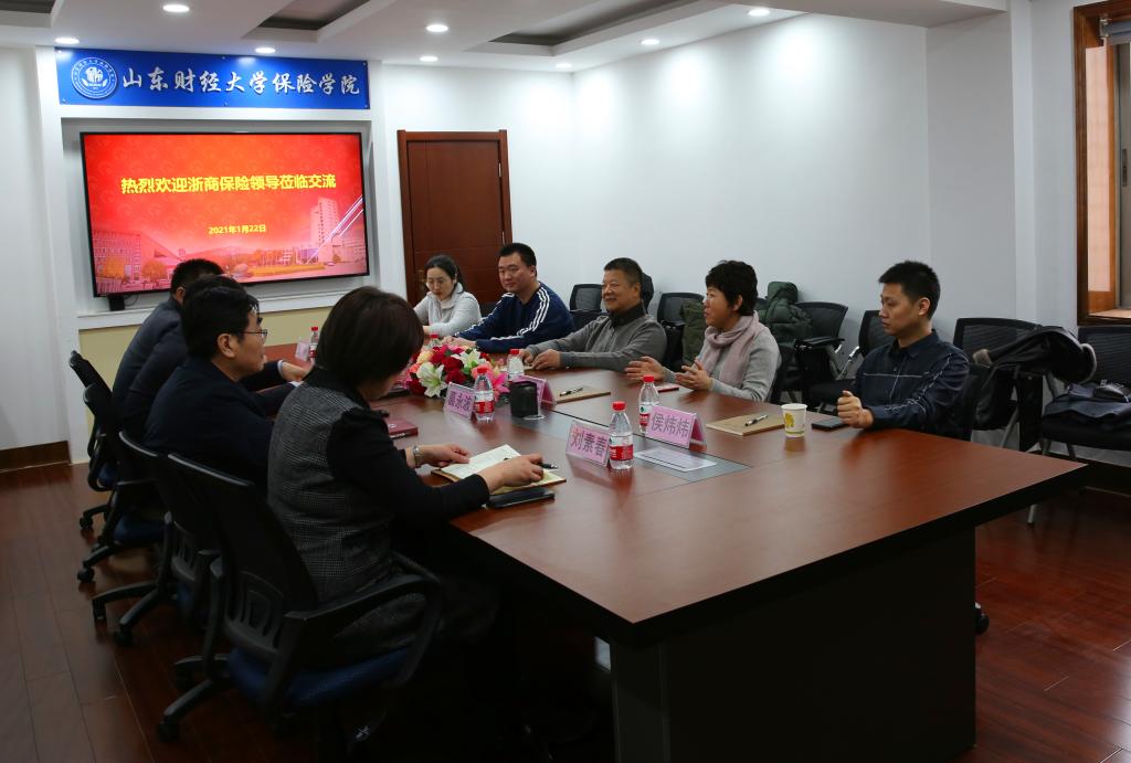 2021年1月22日下午,浙商财险保险股份有限公司山东分公司党委书记胡小军、总经理鲁秀芬、总经理助理周维成、财务负责人侯炜炜、办公室主任刘晨辰一行5人莅临日本成人电影 交流座谈,日本成人电影 全体领导班子成员出席参加座谈会。