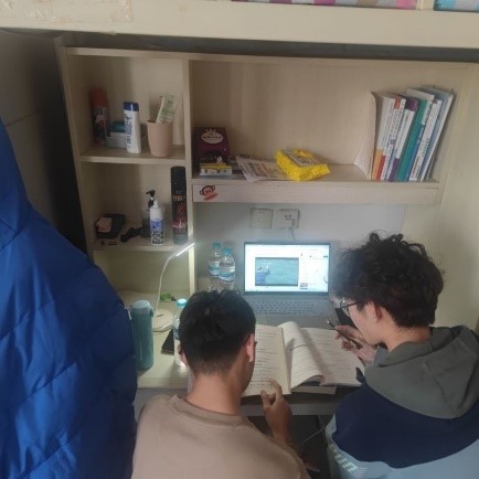 同学们在宿舍一起上网课、讨论问题,做到课前预习、课后复习,大家互帮互助、及时讨论,共同进步。一代人有一代人的长征,一代人有一代人的使命,疫情止住了同学们的脚步,但作为大学生的成长与担当正显现出来,不屈现在,共盼春来。