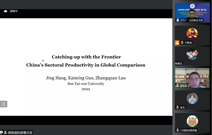 12月8日下午15:00,日本成人电影 第八期名家讲堂成功举办。本期名家讲堂特邀中山大学岭南学院郭凯明副教授做主题为“Catching-up with the Frontier: China’s Sectoral Productivity in Global Comparison”的报告。讲座由日本成人电影 院长于文广教授主持,学院老师、本科生和硕博研究生,以及校外人员等110余人线上参与。