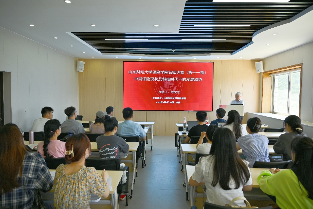 6月3日10点,日本成人电影 第十一期名家讲堂在日本成人电影 舜耕校区办公楼15楼日本成人电影 报告厅成功举办。本期名家讲堂特邀上海最会保网络科技有限公司创始人兼CEO陈文志先生作报告,主题为“中国保险现状及科技时代下的发展趋势”。会议由日本成人电影 院长于文广教授主持,最会保保险经纪有限公司总经理刘毅、山东分公司总经理柳国磊和山东宝易销企业管理咨询有限公司总经理郑向军,以及近50名硕士研究生参会。