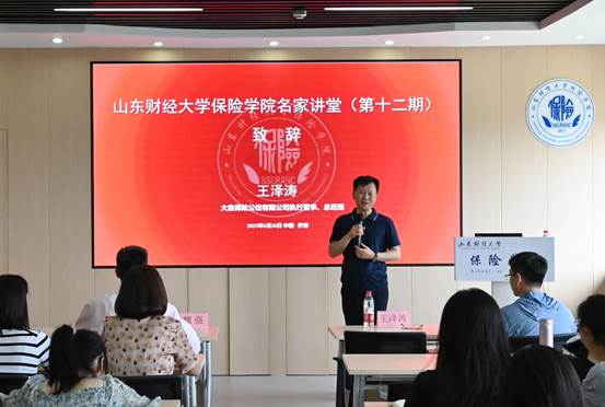 王泽涛先生在报告开始前致辞,结合自身职业生涯系统梳理了中国寿险公估行业发展历程,并诚挚邀请保院学子到大童保险公估有限公司实习工作。