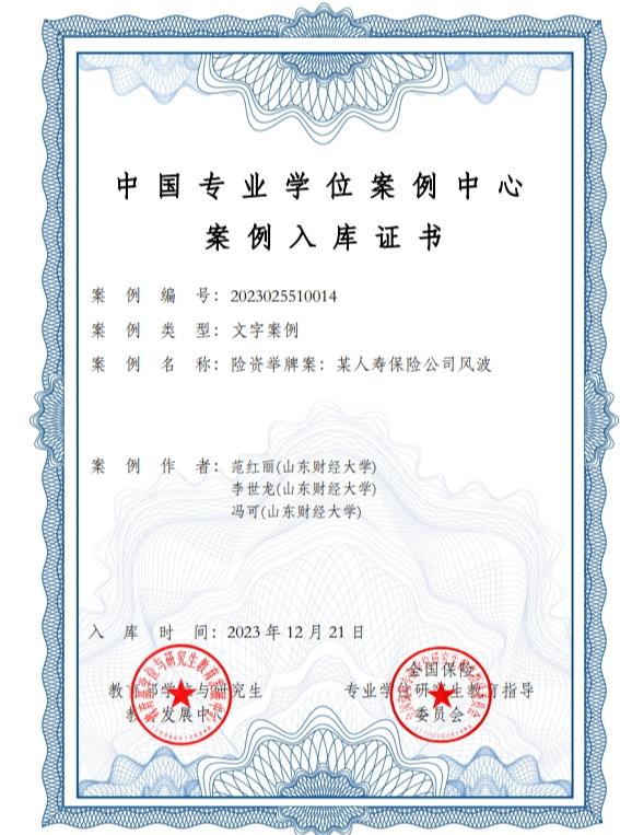 近日,全国保险专业学位研究生教育指导委员会(保险教指委)发布《2021年全国保险专业学位入库教学案例征集评审结果》(MI委〔2023〕2号)。本届案例征集活动经培养单位自主申报,秘书处组织形式审查、双盲随机分组、匿名通讯评审、专家组会审、教指委委员会审议等程序,共评审出全国保险专业学位入库教学案例25篇。