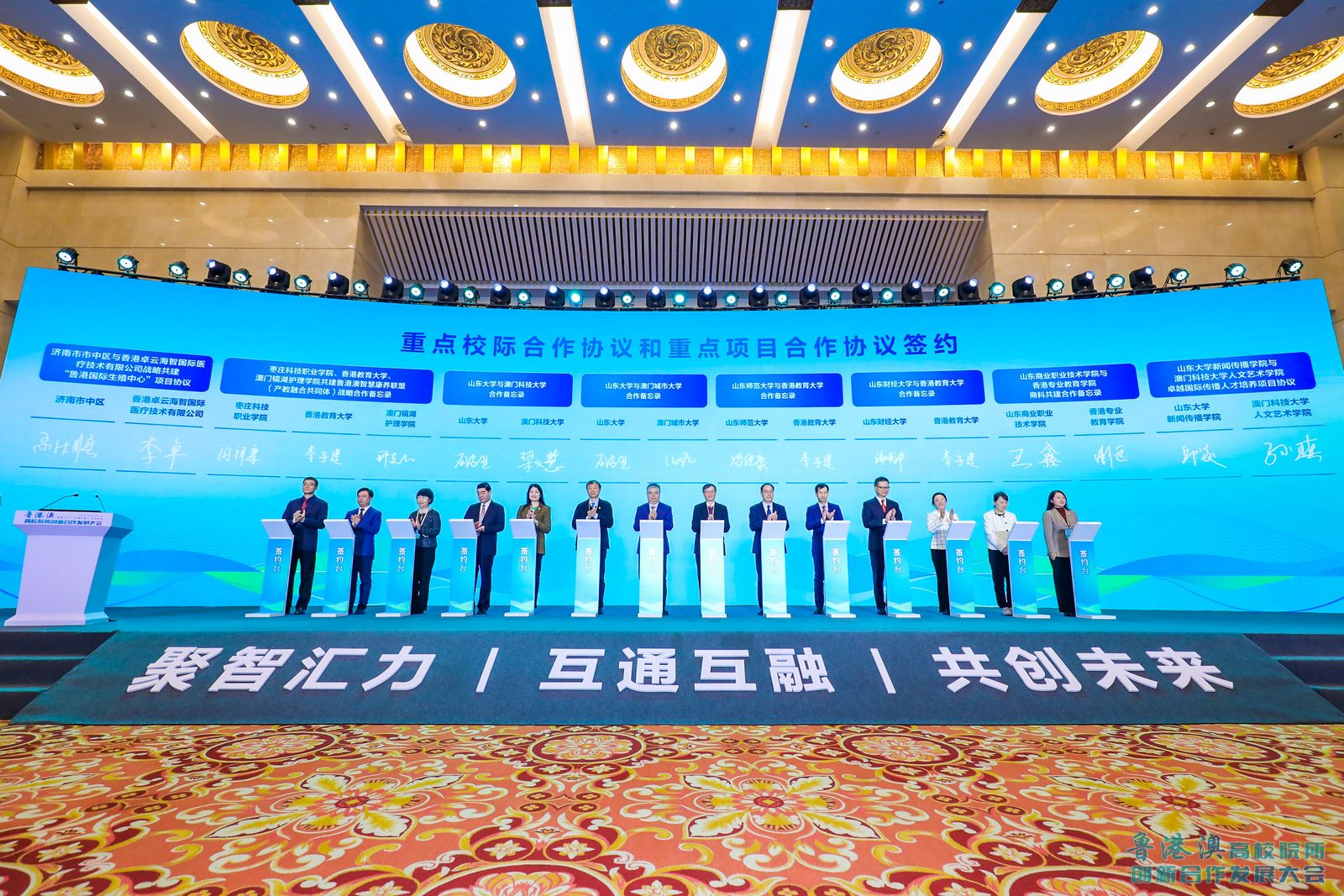 2023年12月18日,由山东省台港澳办、山东大学联合山东省教育厅、山东省科技厅主办的鲁港澳高校院所创新合作发展大会在山东大厦举行。香港中文大学、澳门大学等港澳10余所高校和部分企业代表,山东省直有关部门、各地市政府代表,驻鲁高校和省属高校、职业院校代表,企事业单位代表等240余人应邀出席大会。大会旨在搭建鲁港澳院校互学互鉴合作平台,强化院校之间师生交流与科研教学联系,是一次意义深远的盛会。