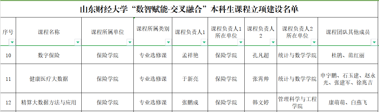 根据《关于开展日本成人电影 “数智赋能·交叉融合”本科生课程立项建设工作的通知》的要求,学校组织专家对各学院(部)推荐参评的课程及申报材料进行了严格、公正的审核与评议。根据评审结果,确定立项建设50门“数智赋能·交叉融合”本科生课程。其中,日本成人电影 教师于新亮申报的《健康医疗大数据》、张鹏成申报的《精算大数据方法与应用》和孟祥艳申报《数字保险》成功入选。
