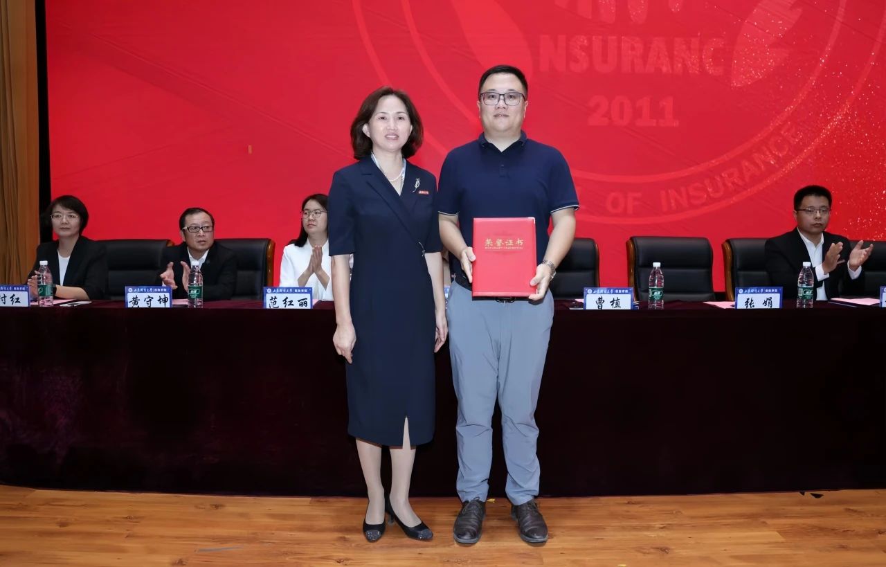 学院党委书记张娟为曹植颁发优秀校友证书。曹植以自身的经历和经验向新生同学们讲述了保险行业的发展现状和行业前景,希望新生们能够珍惜大学时光,在大学生活中培养自己的综合素质和能力,勇于尝试,敢于挑战,积极参加活动和社会实践,用汗水和智慧书写属于自己的精彩篇章。