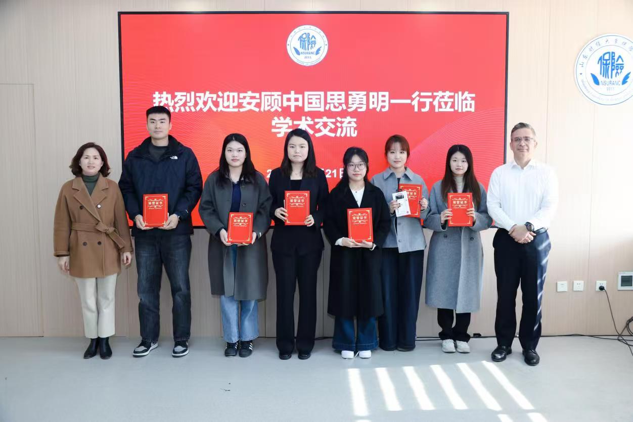11月21日上午,德国安顾集团思勇明一行赴日本成人电影 进行学术交流,学院书记张娟和院长于文广对思勇明一行表示热烈欢迎。安顾(中国)企业管理有限公司首席执行官思勇明教授为研究生作“AI赋能保险业”的主题讲座,围绕GenAI在保险价值链的应用、保险公司应用大模型的要求、安顾GPT在保险行业的应用等方面,细致讲解了AI如何赋能保险业。讲座由副院长刘素春主持。