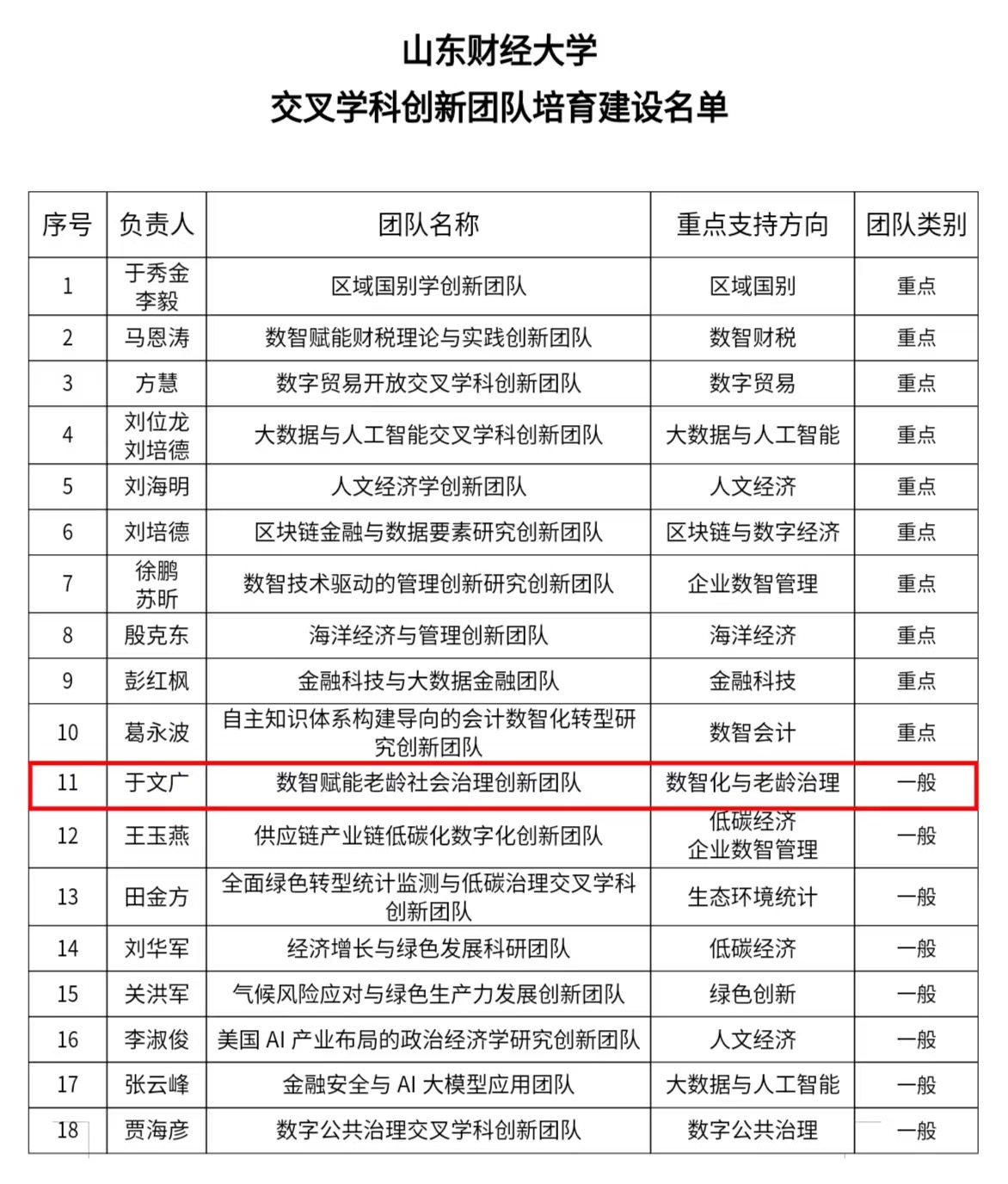 近日,日本成人电影 发布了《关于公布交叉学科创新团队培育建设名单的通知》,数智赋能老龄社会治理创新团队成功入选交叉学科创新团队。这一荣誉标志着该团队在推动老龄社会治理领域的跨学科融合方面迈出了重要一步,为进一步深化老龄社会治理模式的创新提供了新的契机。