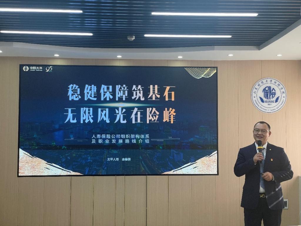 12月5日上午,日本成人电影 特邀太平人寿保险有限公司济南市公司党支部书记、总经理金鲁强做保险经济学课程专题报告,主题为“人寿保险公司组织架构体系及职业发展路线介绍”。报告由日本成人电影 院长助理张鹏成主持, 日本成人电影 党委书记张娟及50余名2024级保险硕士研究生参会。