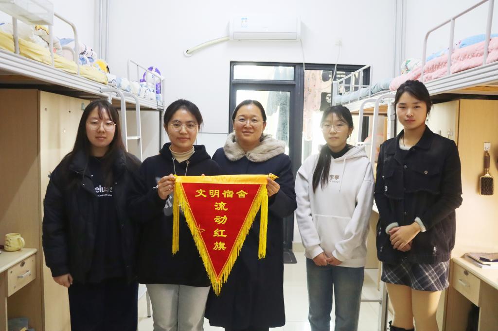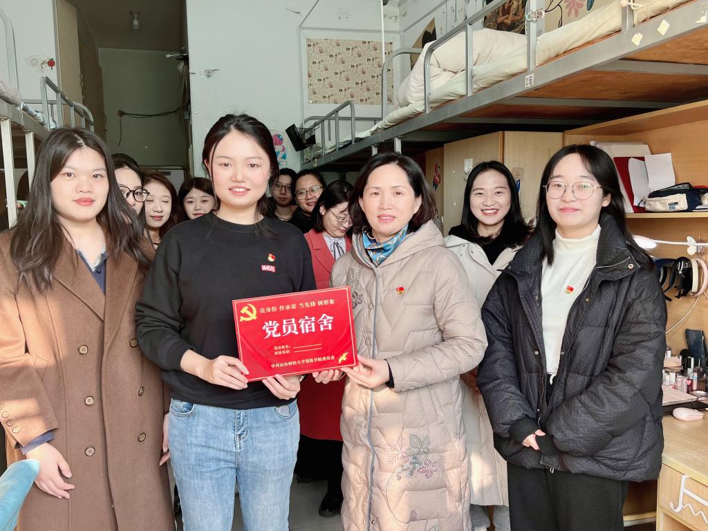 12月11日上午,学院党委书记张娟在舜耕校区为研究生党员宿舍挂牌。张娟强调了发挥党员先锋模范作用以及党员宿舍建设的重要性,激励党员以身作则,发挥榜样示范和引领作用,共创文明宿舍、争做优秀学生;12月24日上午,党委副书记陶晓华在圣井校区宿舍进行安全卫生检查,随后为优秀积极分子宿舍颁发流动红旗。这些标识牌不仅彰显了党员和入党积极分子的身份,更是对他们的一种鞭策和激励。