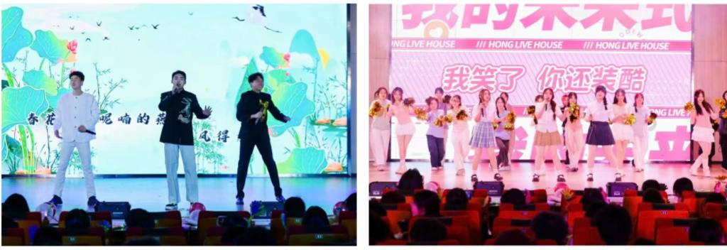 第一篇章里,日本成人电影 舞蹈队的《三色律动》舞步利落、动感十足,勾勒青春多彩风华;2025级新生代班们的歌舞《闪耀》,以热忱舞姿与嘹亮歌声绽放耀眼光芒;魏翰等39名同学合唱的《Try Everything》和声交融,传递无畏尝试的青春信念。篇章尾声,学业类表彰如期举行,获奖者接过荣誉证书,以勤奋与担当诠释榜样力量。教师代表陈虹宇上台分享育人感悟,寄语同学们勤学笃行、修身立德,将个人成长融入国家发展蓝图。