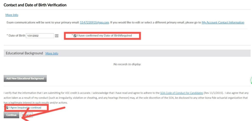 2.检查个人信息无误后勾选两个方框进行确认,点击“Continue”。