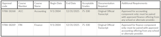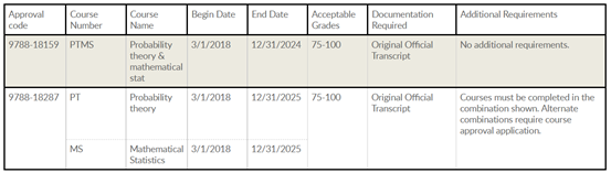 学校提供给SOA的课程代码是提交材料时的代码,而后期学校可能会更新课程代码,这就使得英文成绩单上的课程代码与官网上的课程代码不一致。这并不会影响你的VEE认证,只要所认证的课程未到期即可。