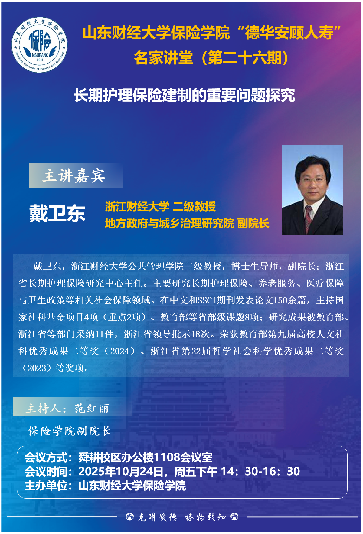 日本成人电影 “德华安顾人寿”名家讲堂(第二十六期),10月24日,14:30,报告人:戴卫东