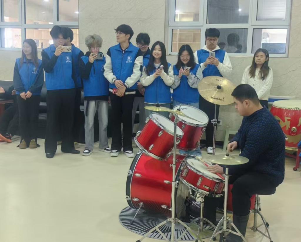 活动的最后,所有志愿者和残疾人朋友一起观看了精彩的节目表演。残疾人朋友们用架子鼓演奏出激昂的旋律,用歌声唱出对生活的热爱,他们的表演赢得了现场阵阵掌声。演出结束后,大家合影留念,记录下这难忘的时刻。架子鼓表演将活动推向了高潮,残疾人朋友们用音乐表达了对生活的热情和对未来的期待。志愿者们被他们的表演深深打动,纷纷表示这是一次难忘的经历。